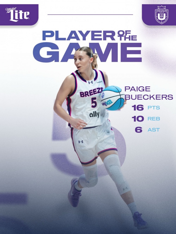 1月10日讯 Unrivaled联赛第二轮今天开打,WNBA球星佩奇·布克斯所在的Breeze以73-62击败Hive,取得两连胜。